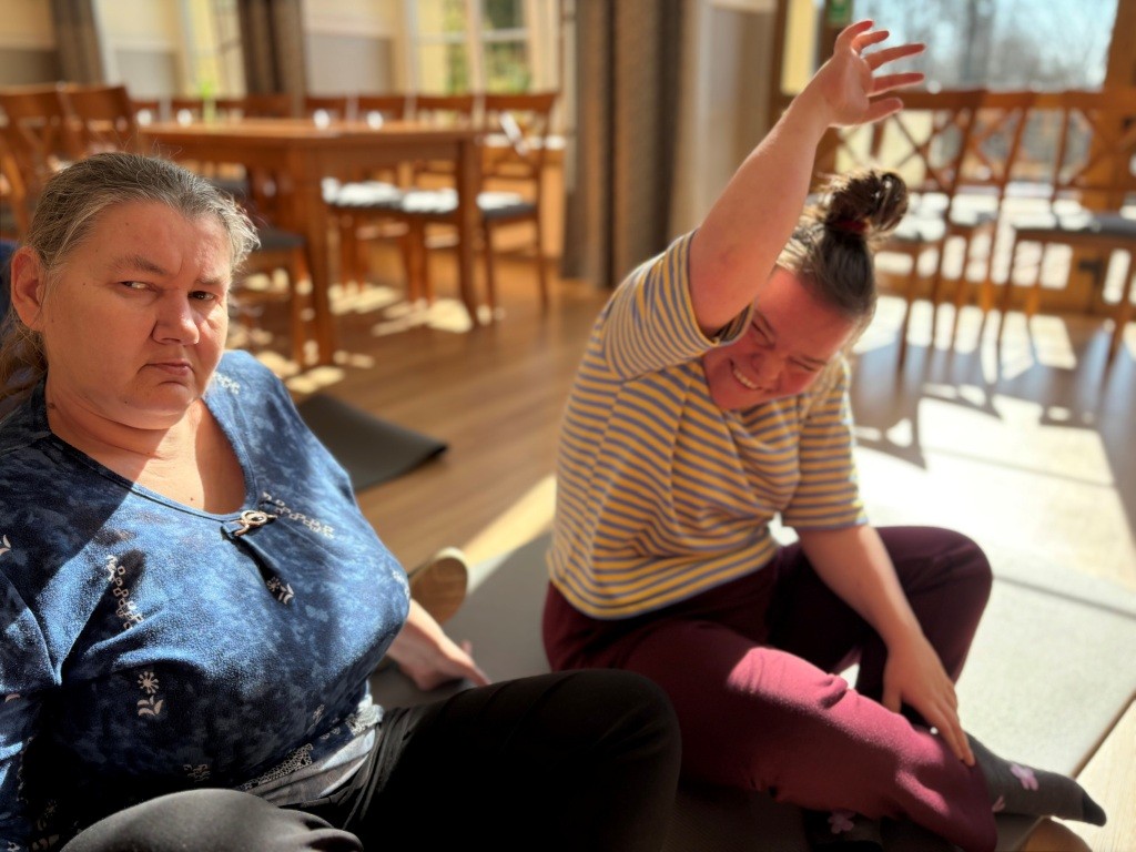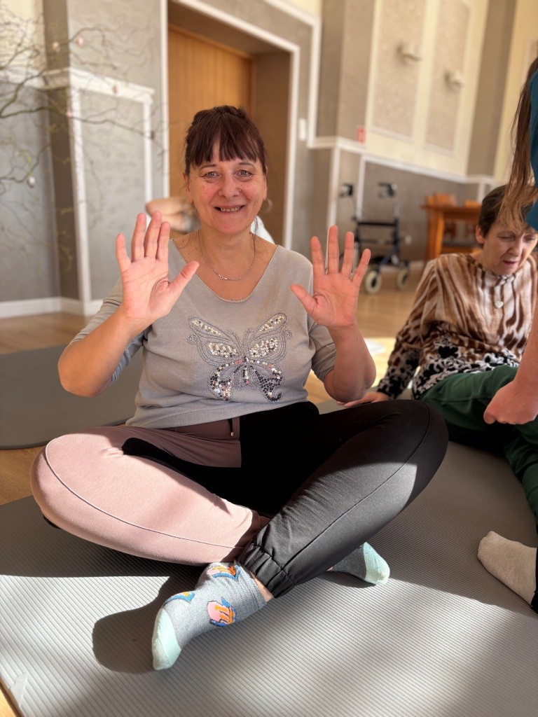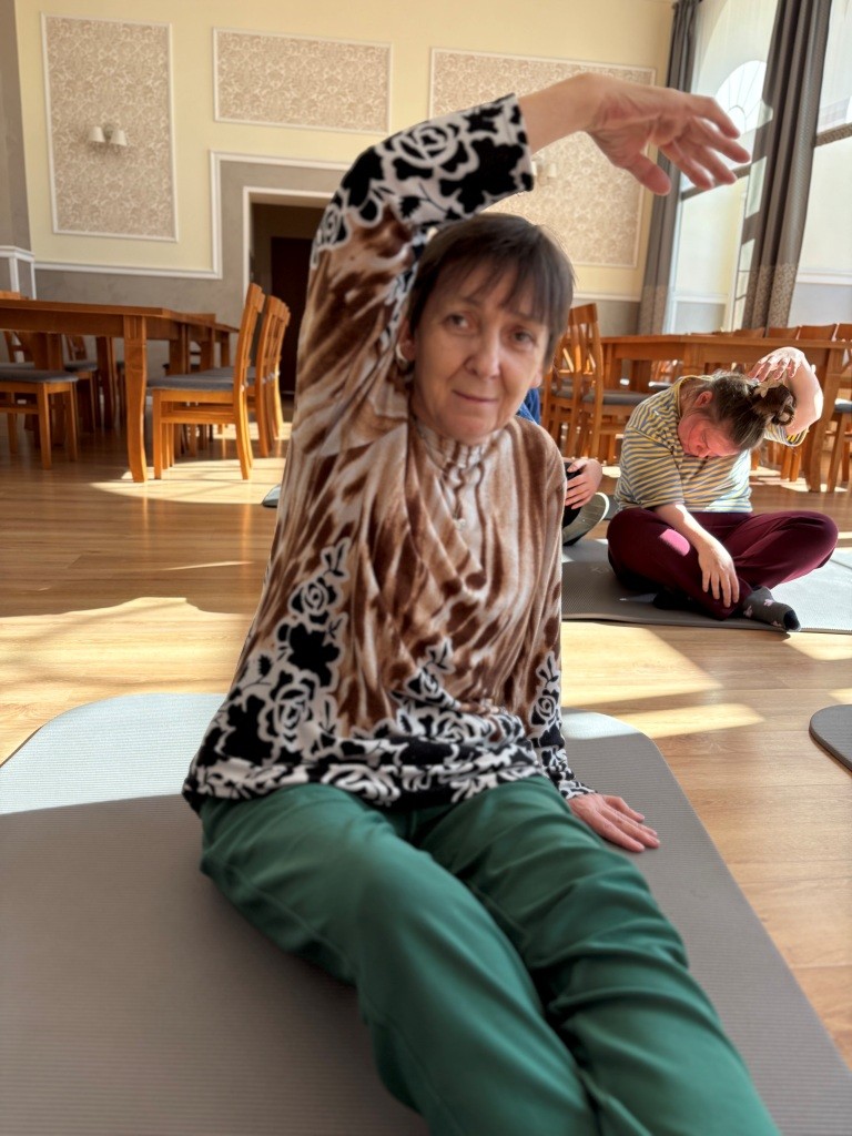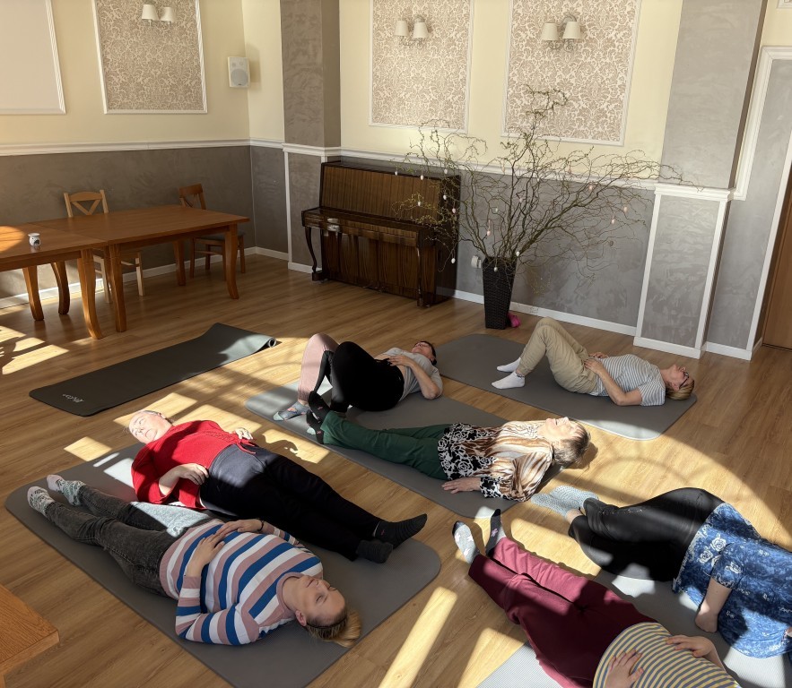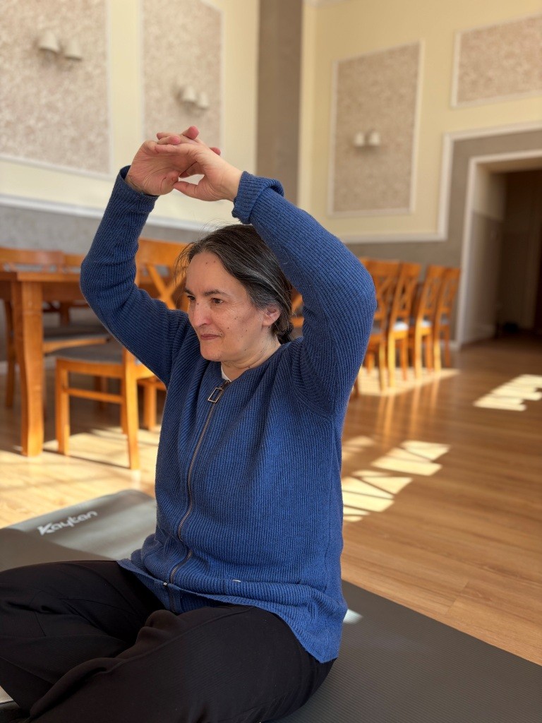 09.04.2026 r. Mieszkanki naszego Domu wzięły udział w zajęciach ruchowych z elementami jogi. Podczas spotkania wykonywały proste ćwiczenia oddechowe i rozciągające, które sprzyjały wyciszeniu, poprawie samopoczucia oraz rozluźnieniu ciała. Zajęcia odbyły się w spokojnej i przyjaznej atmosferze.